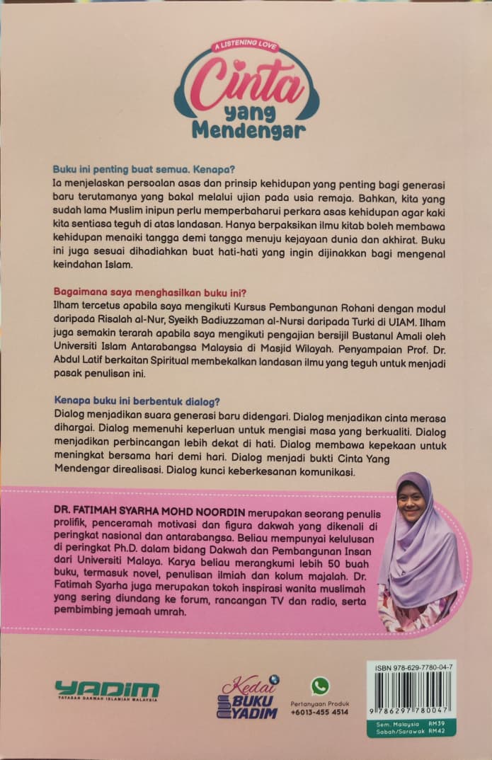 Dialog menjadikan suara generasi baru didengari. Dialog menjadikan cinta merasa dihargai. Dialog memenuhi keperluan untuk mengisi masa yang berkualiti. Dialog menjadikan perbincangan lebih dekat di hati. Dialog membawa kepekaan untuk meningkat bersama hari demi hari. Dialog menjadi bukti Cinta Yang Mendengar direalisasi. Dialog kunci keberkesanan komunikasi.